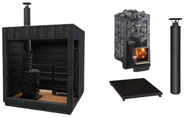 - Peso da sauna 1.100 kg (excluindo aquecedor e pedras)