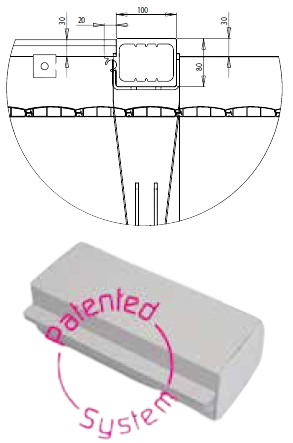 As vigas de 80 mm são pré-arqueadas (sistema patenteado) e não necessitam de suportes anti-flexão.