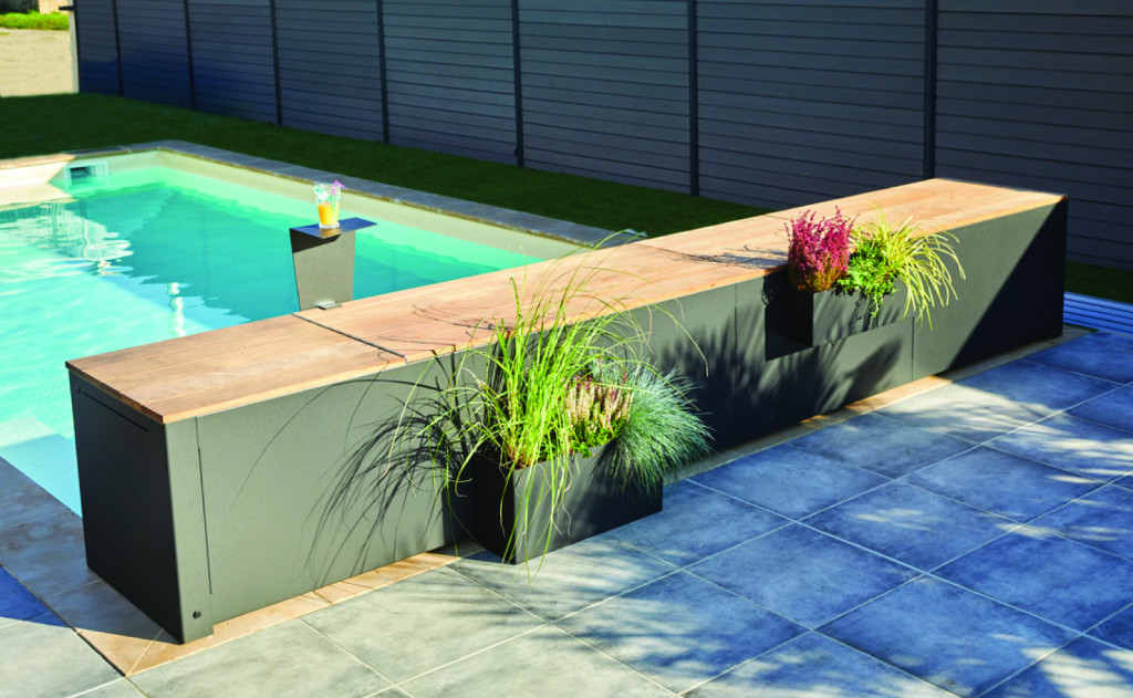 - O enrolador é instalado dentro de um banco com design minimalista, inspirado no mobiliário de exterior.