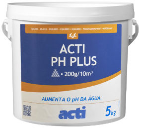 O pH deve situar-se entre 7,0 e 7,4. Para aumentar o pH em 0,2, é necessário adicionar 0,2 Kg de Acti pH Plus para 10 m3 de água.