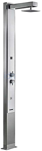 Difusor quadrado orientável em latão cromado anti calcário, 2 jets frontais com efeito nebulizador, controlados por uma válvula reversível de 2 vias.