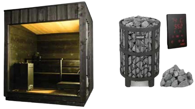 O isolamento também acelera o aquecimento e retem com eficacia o calor da sauna.