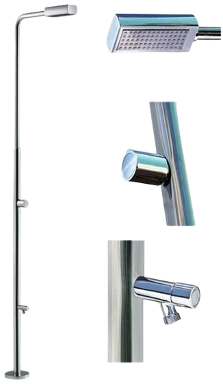 Chuveiro de aço inoxidável polido AISI-304L (diâmetro 43 mm) com 1 difusor anti-calcário cromado e uma válvula de abertura de caudal.