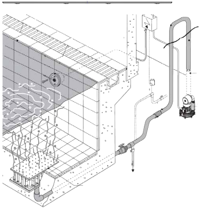 Para um espaço relaxante no fundo da piscina, degraus, banco ou cama submersa.