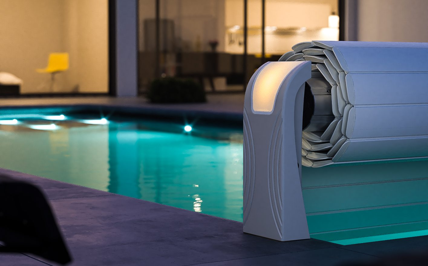 - Abrir e fechar a sua piscina com um ambiente noturno à medida, graças aos pés luminosos e à variada paleta de cores.