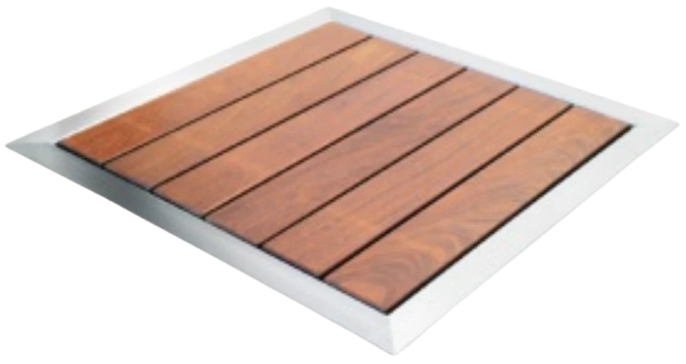 Base de chuveiro misto em madeira tropical e AISI-316L acetinado.