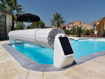 - A alimentação do motor (24 V) é assegurada por 2 baterias reguladas eletronicamente e alimentadas por um painel fotovoltaico de alto rendimento - autonomia, em caso de obscuridade, de efetuar até 40 ciclos (Piscinas 4,00 x 8,00 Mts.) de abertura e fecho.