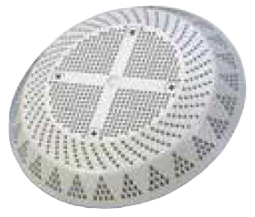 Grelha de sucção em ABS branco para lbetão, com fixação por parafusos Ø162 mm.